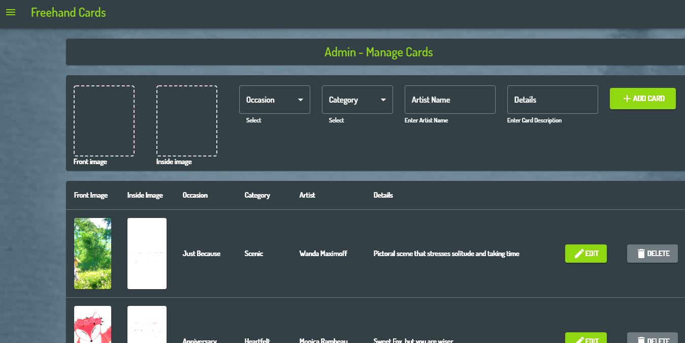 Freehand Cards is a full-stack web service to assist forgetful gift-givers in getting thoughtful cards for important people in their lives.