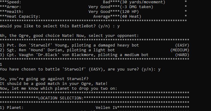 BattleBot Arena is a C++ CLI text-based fighting game which utilizes object oriented programming techniques and text file importing to process the game engine and AI.